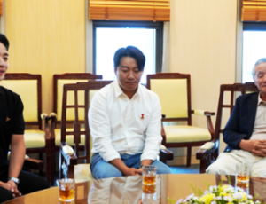 [강원 가족 아너소사이어티를 만나다]②김성인·김성철 춘천 통나무집닭갈비 공동대표|◇김성인(왼쪽), 김성철(중간), 춘천 (주)통나무집닭갈비 공동대표와 김형우(오른쪽) (주)통나무닭갈비 대표와 이야기를 나누고 있는 모…