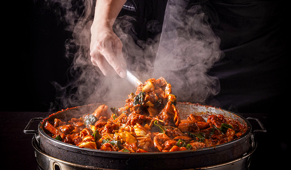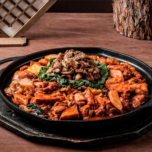 비법 양념장을 넣어 볶아 먹는 통나무집닭갈비 대표 메뉴