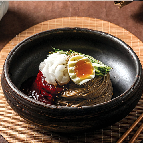 다양한 채소와 메밀가루로 만든 쟁반막국수는 매콤, 달콤,